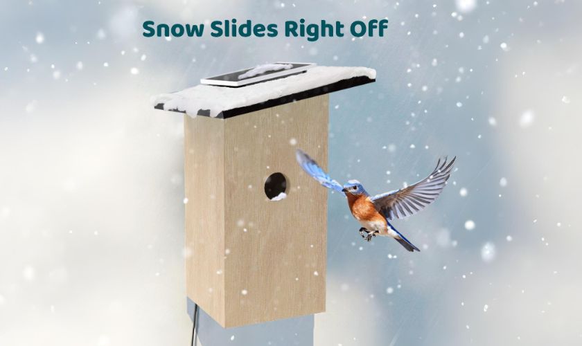 Das Birdfy Vogelhaus ist für extreme Wetterbedingungen ausgelegt und verfügt über eine IP66-Wasserschutzklasse, die zuverlässige Leistung bei Regen und Kälte gewährleistet. Der Schnee gleitet mühelos ab. Der 9000-mAh-Akku, gepaart mit einem Solarpanel zur Aufladung, sorgt für eine zuverlässige Stromversorgung, sodass Sie sich keine Sorgen über eine leere Batterie während ausgedehnter Vogelbeobachtungen machen müssen.