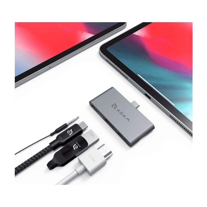 Der Casa Hub i4 wurde speziell für das iPad Pro entwickelt und verfügt über eine leistungsstarke Leistung. Sie können die ADAM-Elemente CASA Hub einfach an den USB-C-Port des iPad Pro anschließen und sofort loslegen. Der USB-A-Anschluss ist ideal für den Anschluss von Peripheriegeräten oder die Verwendung für die Datenübertragung. Mit dem USB-C-Anschluss können Sie Dateien auf ein anderes Gerät übertragen und gleichzeitig aufladen. Verwenden Sie die 3,5-mm-Audiobuchse für den Anschluss von Kopf- und Ohrhörern. Dank des 4K-HDMI-Anschlusses können Sie gestochen scharfe Bilder auf einen externen Fernseher oder Monitor streamen!