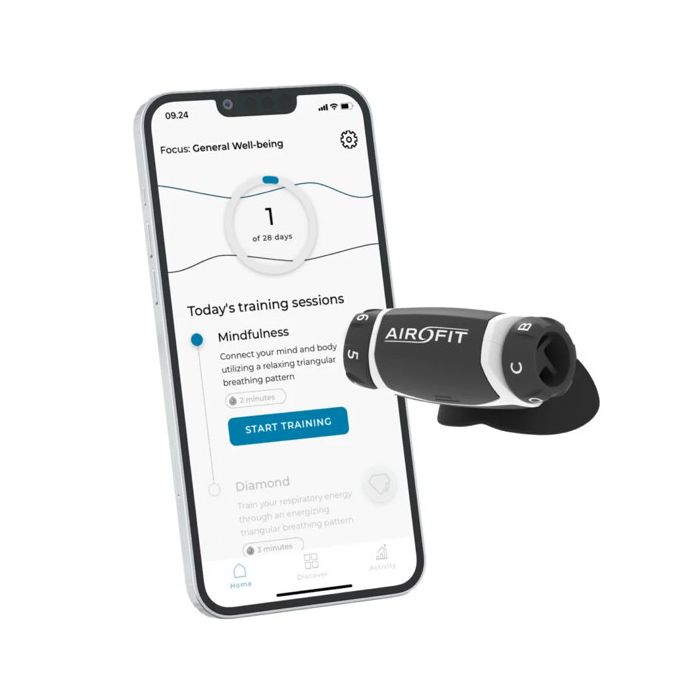 Wir stellen das Airofit Active vor, ein hochmodernes Atemtrainingsgerät, das die körperliche Leistungsfähigkeit und das allgemeine Wohlbefinden durch geführte Atemübungen steigert. Dieser Nachfolger des weltweit ersten intelligenten Atemtrainingsgeräts wurde entwickelt, um die Lungenkapazität, die Atemmuskelkraft und die allgemeine Gesundheit mit seinen innovativen Funktionen und seinem benutzerfreundlichen Design zu verbessern. Das Airofit Active verfügt über einen einstellbaren Luftstromwiderstand zur gezielten Beeinflussung der Atemmuskulatur und ermöglicht so Trainingseinheiten jederzeit und überall - ob vor dem Schlafengehen, bei der Arbeit oder nach dem Training.