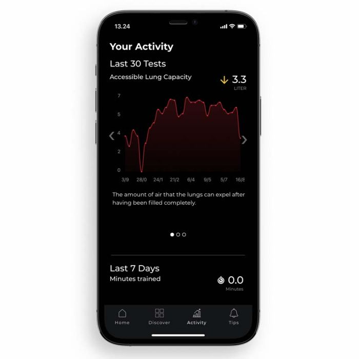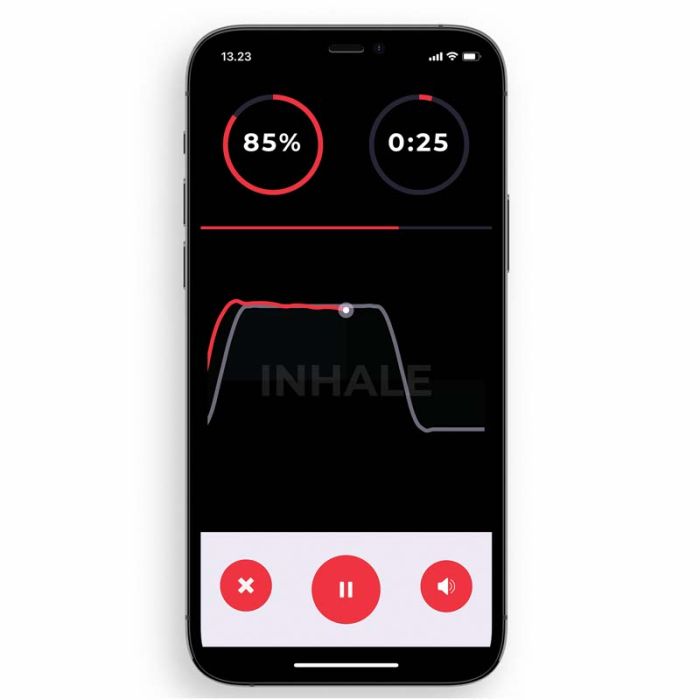 Die kostenlose Airofit-App für Mobiltelefone fungiert als virtueller Atemtrainer, der Ihnen ein personalisiertes Trainingsprogramm auf der Grundlage des von Ihnen gewählten Schwerpunkts erstellt. Die App berücksichtigt dann Ihre Daten, Ihr Alter, Ihre Größe und Ihr Geschlecht, um jede Trainingseinheit individuell zu gestalten. Die App gibt Ihnen Live-Feedback und stellt sicher, dass alle Übungen korrekt ausgeführt werden. Ihre Trainingsdaten werden in Ihrem Konto gespeichert, sodass Sie einen Überblick über Ihren Trainingsfortschritt im Laufe der Zeit erhalten. Airofit ist sowohl mit iOS als auch mit Android kompatibel.