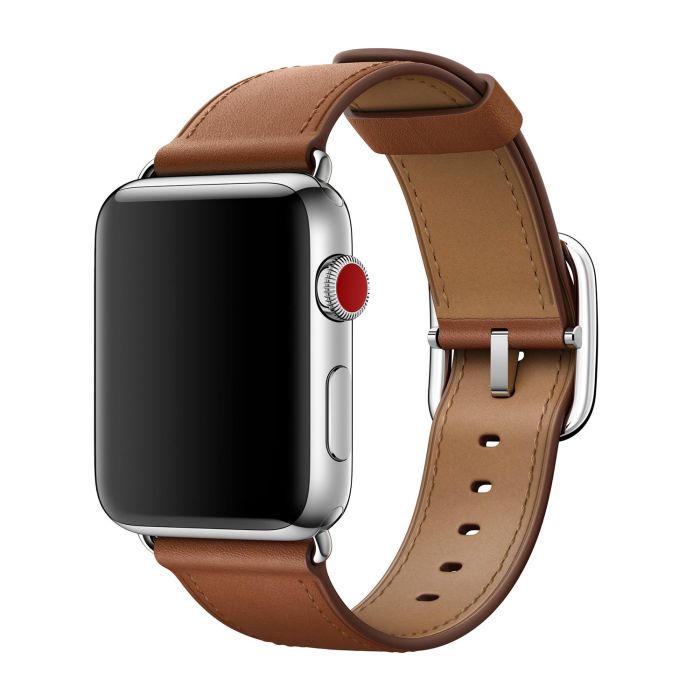 Apple-Lederarmband Classic Buckle für Apple Watch in der Farbe Saddle Brown.