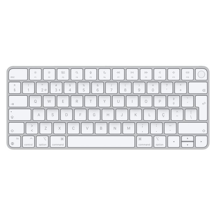 Dieses Apple Magic Keyboard mit Touch ID QWERTY POR Aluminium arbeitet kabellos mit Ihrem Mac oder Computer. Verbinden Sie die Tastatur über Bluetooth, und es gibt keine Kabel auf Ihrem Schreibtisch.
