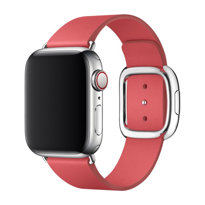 Leder Apple Modern Buckle für die Apple Watch in der Farbe Peony Pink.