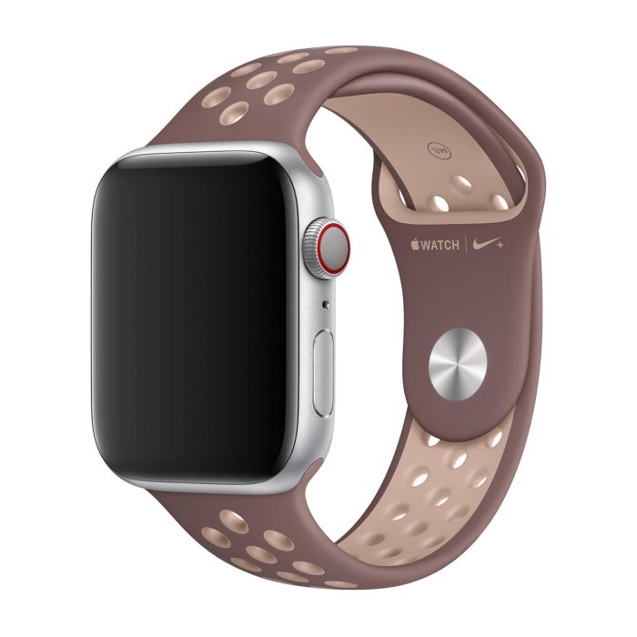 Dies ist das Nike Silikon-Sportarmband für Apple Watch in der Farbe Smokey Mauve / Particle Beige.
