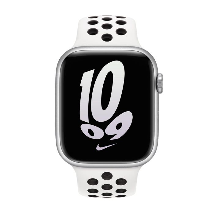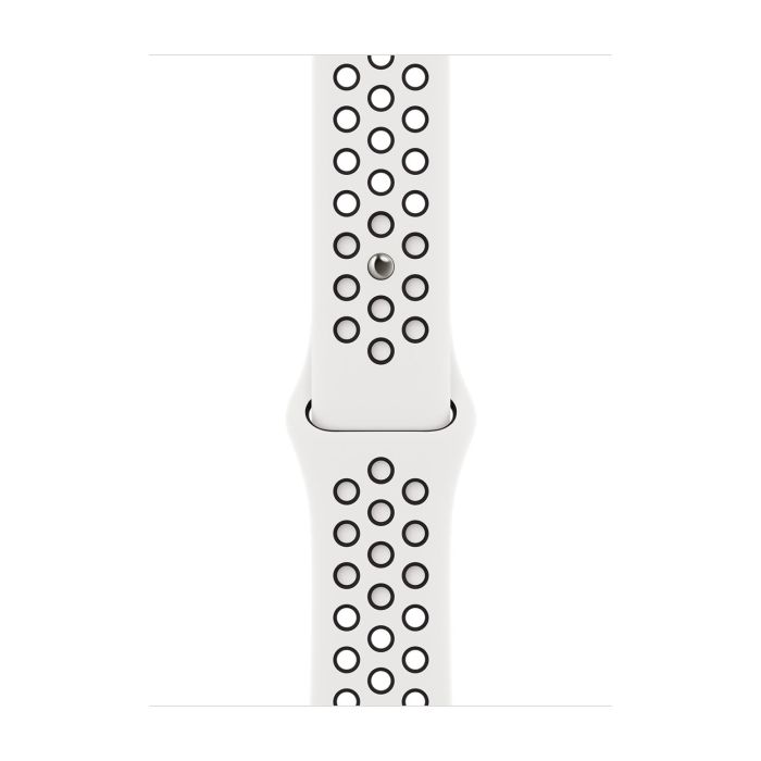 Hergestellt aus einem speziellen Hochleistungs-Fluorelastomer mit kompressionsgeformten Perforationen für eine gute Belüftung, ist das Nike Sport Band langlebig und robust, dabei jedoch überraschend weich. Das glatte, dichte Material legt sich elegant um Ihr Handgelenk und fühlt sich angenehm auf der Haut an. Ein innovativer Pin-and-Tuck-Verschluss sorgt für eine saubere Passform.