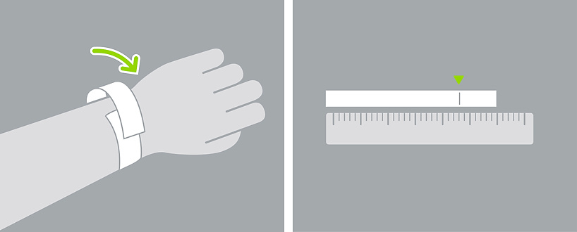 Um herauszufinden, ob Sie die mittlere oder große Größe benötigen, messen Sie am besten Ihr eigenes Handgelenk. Dafür gibt es mehrere Möglichkeiten. Es ist wichtig, dass Sie die Stelle am Handgelenk messen, an der Sie sitzen. Um Ihr Handgelenk zu messen, benötigen Sie eine Schnur oder ein Seil und ein Lineal oder Maßband. Sie können auch nur mit einem Maßband messen, wie in Methode 2 beschrieben.