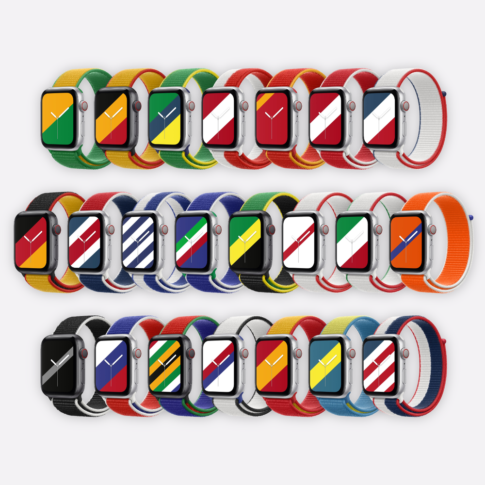 Für die Olympischen Spiele in Tokio im Jahr 2021 hat Apple die neue internationale Kollektion von Apple Watch Armbändern unter anderem für die Niederlande und Belgien herausgebracht. Apple hat seine Sammlung auf insgesamt 22 Länder erweitert: Australien, Brasilien, Kanada, China, Dänemark, Frankreich, Deutschland, Großbritannien, Griechenland, Italien, Jamaika, Japan, Mexiko, Neuseeland, Russland, Südafrika, Südkorea, Spanien, Schweden und die USA. Zu jedem Band gehört ein passendes Stripe Apple Watch Gesicht. Diese Bänder sind speziell dafür gemacht, deine Liebe zu den Ländern bei Sportveranstaltungen, nationalen Feiertagen und mehr zu zeigen!
