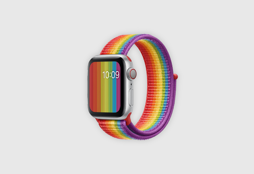 Im Jahr 2020 brachte Apple erstmals zwei Versionen seiner Pride-Bänder heraus: eine gestreifte Version seines Fluorelastomer-Sportbandes und ein Nike+ Pride-Band. Auffallend war, dass das Sportband von Apple das erste mehrfarbige war, das auf den Markt kam; zuvor gab es nur einfarbige. Die Streifen des Sportbandes verlaufen nicht ganz glatt, was laut Apple auf den manuellen Herstellungsprozess zurückzuführen ist, der jedes Band zu einem Unikat macht.