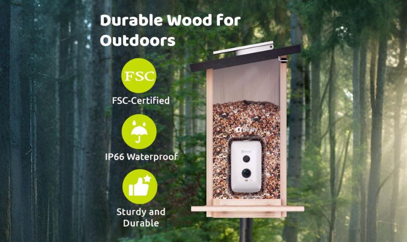 Der Birdfy Futterspender ist aus nachhaltigem Fichtenholz gefertigt und bietet eine lange Lebensdauer, während er Vögel auf natürliche Weise anzieht. Das solarbetriebene Design und die wetterbeständige Konstruktion machen ihn perfekt für den Außeneinsatz und garantieren langanhaltende Haltbarkeit und Zuverlässigkeit.
