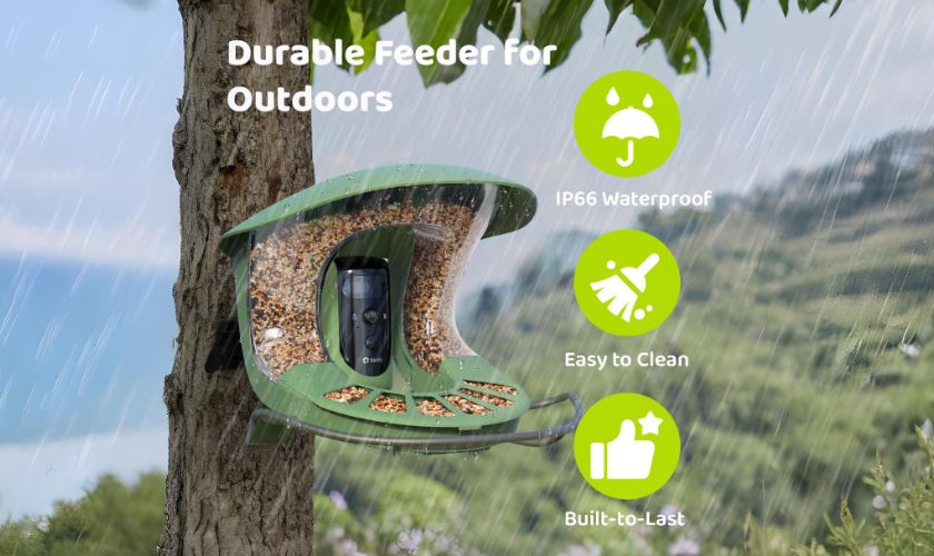 Der Birdfy Feeder 2 Pro wurde entwickelt, um den Elementen standzuhalten. Mit einer IP66-Wasserschutzbewertung sorgt er dafür, dass er bei allen Wetterbedingungen gut funktioniert. Vom Regen bis zum Schnee wird Ihre Vogelbeobachtung unabhängig vom Wetter fortgesetzt.