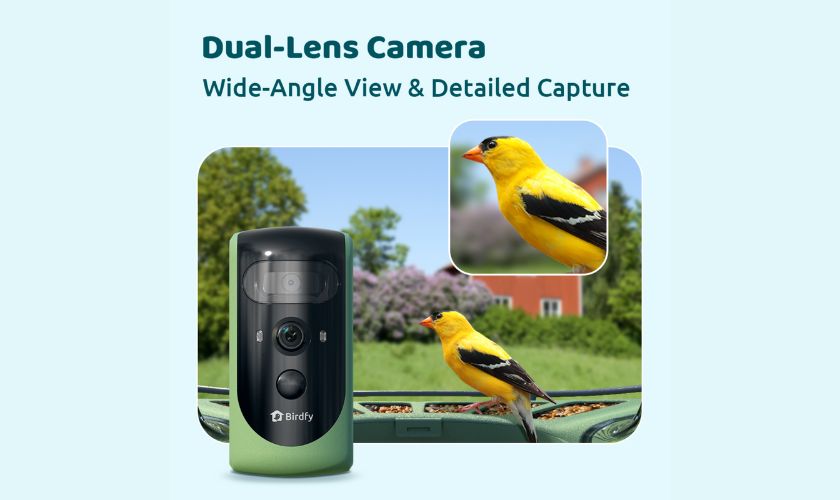 Der Birdfy Feeder 2 Pro ist mit zwei Kameras ausgestattet: einem Weitwinkelobjektiv für die Aufnahme von Vollbild-Videos von Vögeln beim Fressen und einem Porträtobjektiv für detaillierte Nahaufnahmen. Das Porträtobjektiv zoomt automatisch heran und liefert gestochen scharfe, federdetallierte Vogelbilder, die jeden Besuch persönlich wirken lassen.