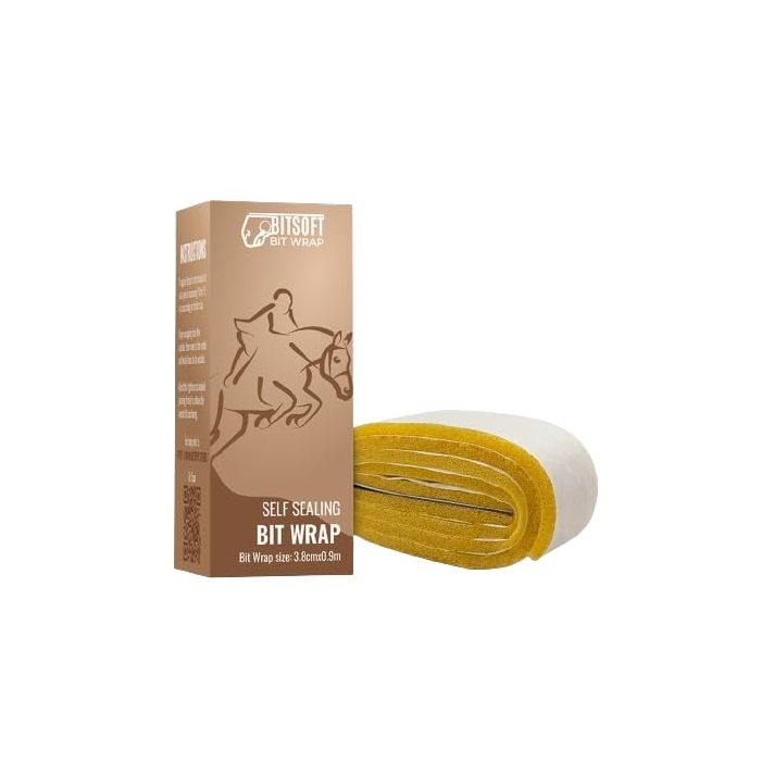 Bitsoft's selbstklebende Gebissbandage, die vollständig selbstklebend und flexibel ist. Ideal, um das Mundstück eines Gebisses weicher zu machen und Reibung und Schmerzen zu vermeiden.