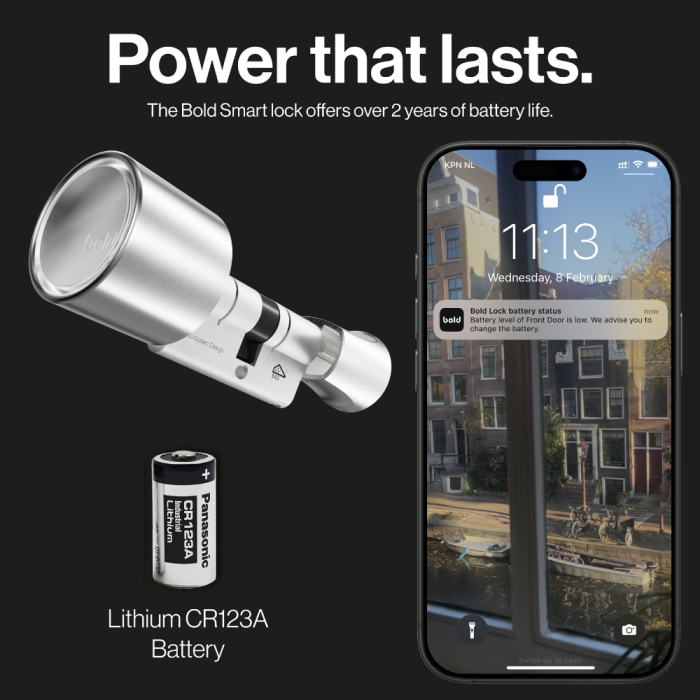 Das Bold Elite Smart Lock vereint elegantes niederländisches Design mit modernster Technologie, um sicheren, mühelosen Zugang für Häuser und Unternehmen zu ermöglichen. Mit fortschrittlichen Funktionen wie Echtzeit-Manipulationswarnungen, automatischem Zutritt und der Möglichkeit, den Schlossstatus aus der Ferne zu überprüfen, vereinfacht es tägliche Abläufe und erhöht gleichzeitig die Sicherheit. Mit Matter-Kompatibilität, müheloser Zugangskontrolle und einer Batterielebensdauer von drei Jahren ist das Bold Elite die perfekte Kombination aus Stil, Komfort und Zuverlässigkeit.