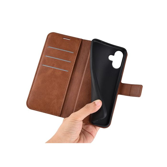 Casecentive Leder Wallet Hülle mit Verschluss iPhone 16 braun