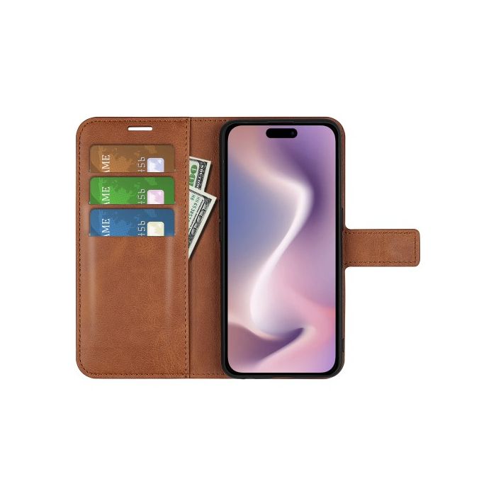 Casecentive Leder Wallet Hülle mit Verschluss iPhone 16 Pro Max hellbraun