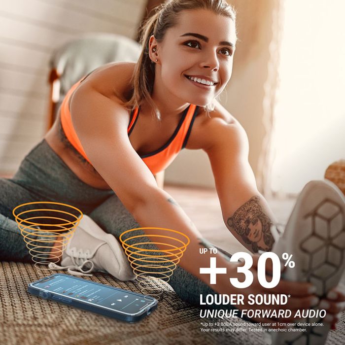 Erlebe ein intensiveres Audioerlebnis mit der patentierten, nach vorne gerichteten Audiotechnologie von Catalyst. Diese innovative Konstruktion verstärkt den Sound um 30% und leitet ihn direkt auf dich, während Hintergrundgeräusche minimiert werden. Ob beim Telefonieren oder Streamen, du wirst alles klarer und lauter hören.
