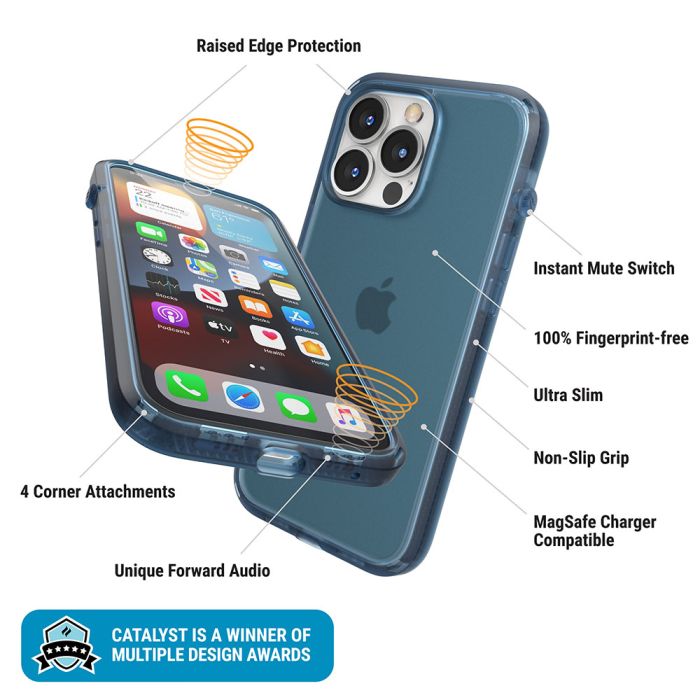 Schütze dein iPhone mit dem Catalyst Influence Case in Pacific Blue, das robuste Haltbarkeit mit elegantem Design vereint. Dieses Case wurde für diejenigen entwickelt, die höchste Ansprüche an Sturzschutz, Klangverbesserung und Benutzerfreundlichkeit stellen.