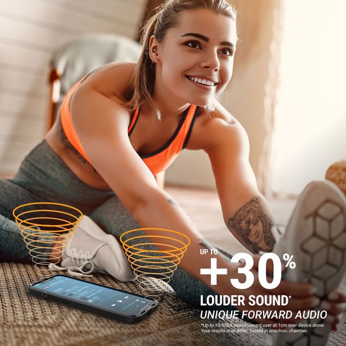 Erleben Sie eine immersivere Audioerfahrung mit der patentierten nach vorne gerichteten Audiotechnologie von Catalyst. Dieses innovative Design erhöht die Lautstärke um 30 %, lenkt den Klang auf Sie und reduziert Hintergrundgeräusche. Ob bei einem Anruf oder beim Streamen von Medien – Sie hören alles klarer.