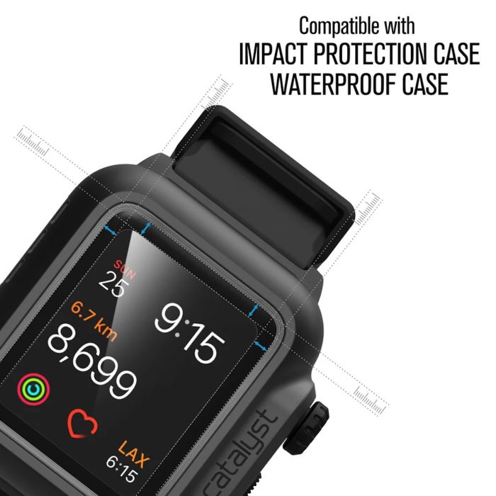 Der Catalyst Bildschirmschutz für Apple Watch wurde entwickelt, um umfassenden Schutz für Ihre Apple Watch zu bieten und sie vor Kratzern und Fingerabdrücken zu bewahren. Das strapazierfähige Material sorgt für langlebigen Schutz, während die fingerabdruckresistente Beschichtung dafür sorgt, dass Ihr Bildschirm auch bei häufiger Nutzung sauber und klar bleibt. Ob im Büro, im Fitnessstudio oder beim Erkunden der Natur – dieser Bildschirmschutz stellt sicher, dass Ihr Apple Watch-Display makellos bleibt.