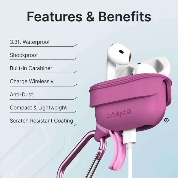 Das Catalyst Waterproof & Drop Proof Case für AirPods (4. Generation) bietet die perfekte Kombination aus wasserfestem, stoßsicherem und kratzfestem Schutz sowie praktischer Tragbarkeit – ein unverzichtbares Zubehör für aktive und abenteuerlustige AirPods-Nutzer.