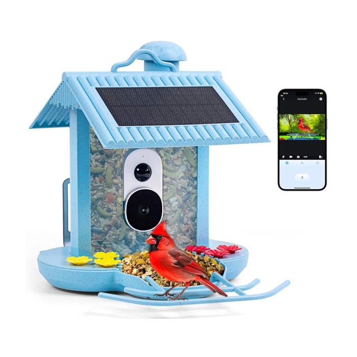 HiBirds Vogelhaus mit Kamera - Vogelbeobachtungskamera mit Solarbetrieb blau