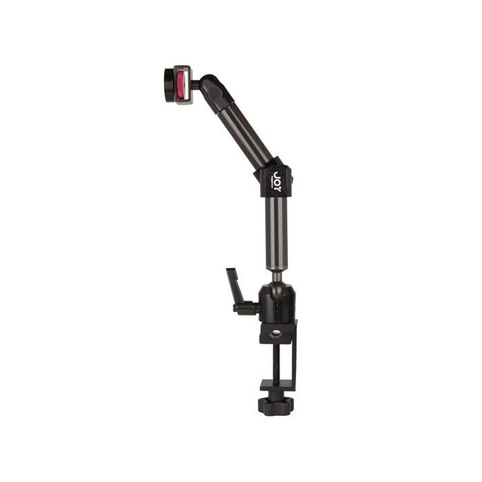 Die Joy Factory MagConnect Carbon Fiber C-Klemmhalterung Dual ist eine Befestigung, die Sie an eine Oberfläche klemmen können. Mit der Dual-Arm-Halterung können Sie ihr Tablet in jede beliebige Richtung positionieren.