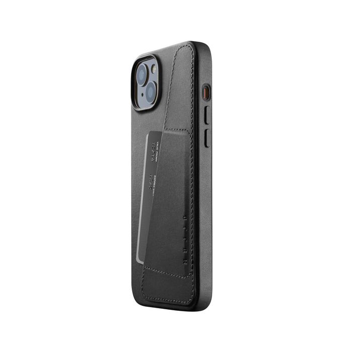 Mujjo Lederhülle Wallet iPhone 14 / 15 Plus schwarz