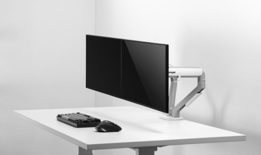 Der Ranqer Monitor Arm Pro Dual in Weiß verbessert deinen Arbeitsbereich mit einem stilvollen Finish und vollständigen Einstellmöglichkeiten für ein ergonomisches Monitor-Setup mit zwei Bildschirmen/Monitoren. Der Arm Pro Dual zeichnet sich durch ein schlankes und durchdachtes Design für zwei Monitore aus. Mit robuster Konstruktion und fortschrittlichen Funktionen eignet sich diese Monitorhalterung ideal für verschiedene Zwecke, von Büroarbeit bis zum Gaming.
