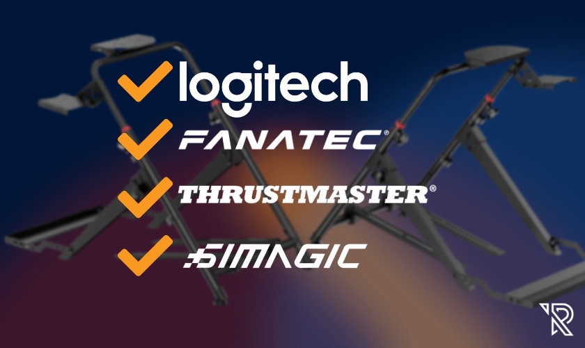 Kompatibel mit Logitech, Fanatec, Thrustmaster und Simagic. Vorgebohrte Montagepunkte machen die Installation zum Kinderspiel.