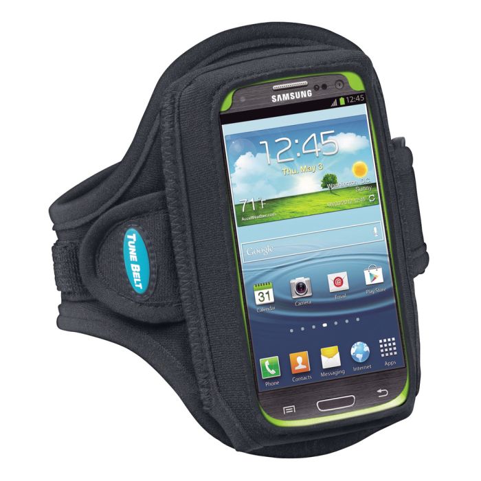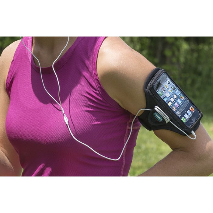 Wenn Sie Ihr Smartphone während des Laufens benutzen und immer griffbereit haben wollen ist dieser Sportgürtel die perfekte Lösung für Sie. Ihr Smartphone wird in einer Hülle gehalten, die sich mit einem Klettverschluss öffnen und schließen lässt. Die Hülle verfügt über ein Schutzfenster, durch welches der gesamte Bildschirm sichtbar und bedienbar ist. So sind Sie allzeit erreichbar und können, wann immer Sie wollen, bequem Ihre Laufzeit überprüfen und Musik hören. Das Smartphone lässt sich einfach in beiden Richtungen in die Hülle schieben, sodass es für Links- und Rechtshänder einfach zu bedienen ist.