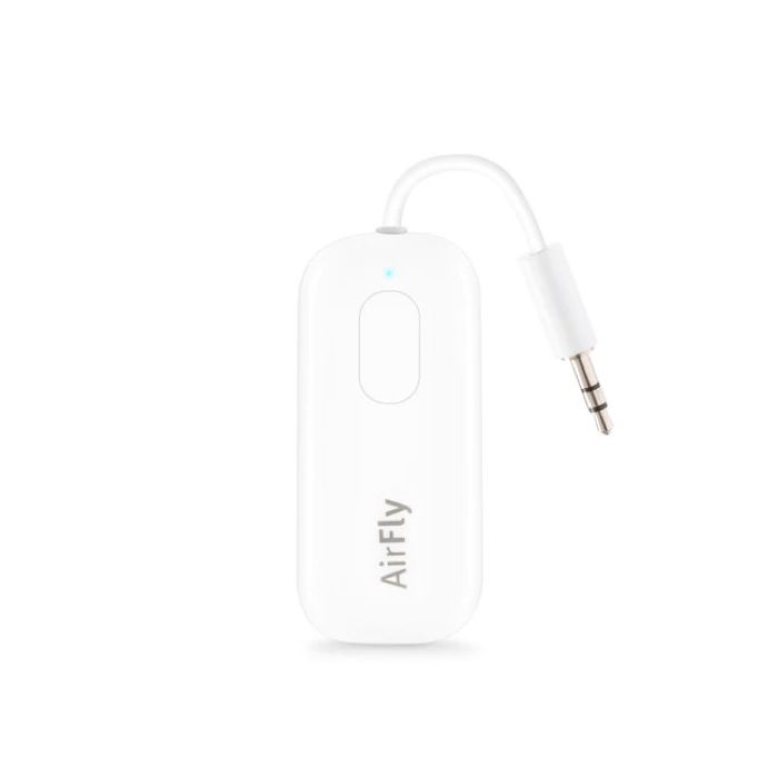 Würden Sie sich auch gerne romantische oder spannende Filme im Flugzeug ansehen? Möglich wird das mit dem Twelve South Airfly. Der AirFly ist ein kleines Bluetooth-Gerät, das drahtlos mit Ihren AirPods (oder anderen kabellosen Kopfhörern) verbunden werden kann, um Musik von Unterhaltungssystemen in Flugzeugen, in Fitnessstudios und an jedem anderen Ort mit einem kabelgebundenen Kopfhöreranschluss zu hören. Schließen Sie Ihre Kopfhörer einfach an den Airfly an und verbinden Sie sie mit einer Miniklinkenbuchse. So einfach ist das! Außerdem bleibt der AirFly 20 Stunden lang aufgeladen.