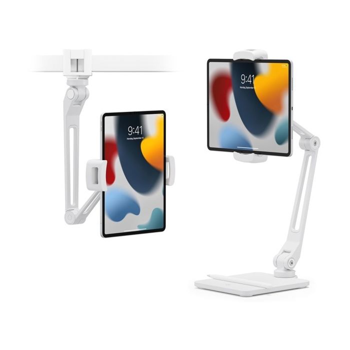 Der Twelve South HoverBar Duo Mount Desk/Clamp Faltbarer Stand (Weiß) ist die ultimative Lösung, um Ihren Arbeitsplatz oder Multimedia-Erlebnis zu verbessern. Der Stand ist so konzipiert, dass er sowohl Tablets als auch Smartphones hält und außergewöhnliche Flexibilität bietet. So können Sie Ihr Gerät in den perfekten Betrachtungswinkel für eine Vielzahl von Aufgaben positionieren – sei es für Arbeit, Videoschauen, Lesen oder Videoanrufe.