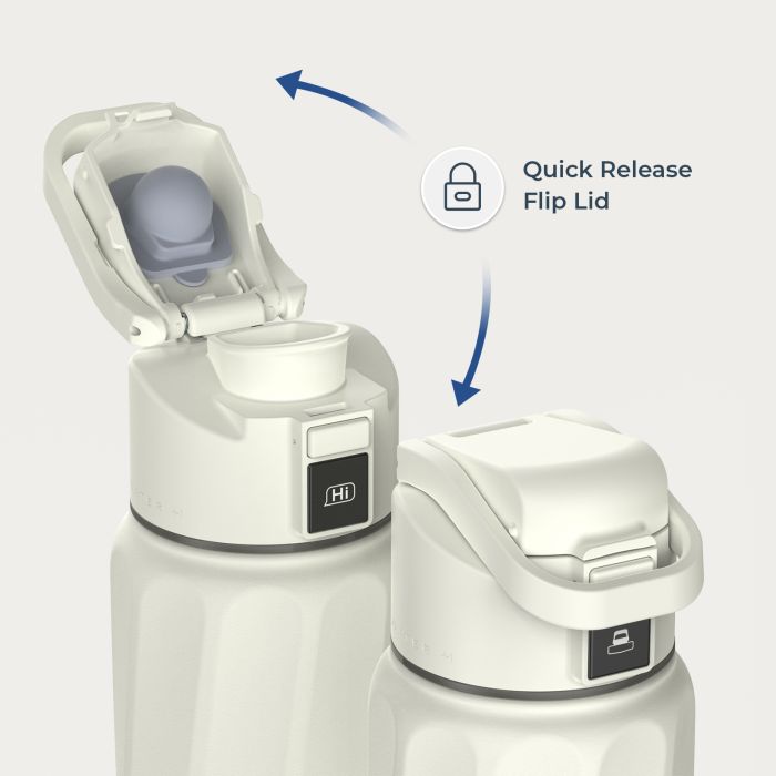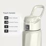 Die WaterH Boost ist mit einem intelligenten LED-Touch-Display auf dem Flaschendeckel ausgestattet, das Echtzeit-Updates zu Ihrer täglichen Wasseraufnahme und der Batterielaufzeit der Flasche bietet. Das LED-Touch-Display zeigt Ihre voreingestellten Intervalle an und sendet Push-Benachrichtigungen, die Sie an regelmäßiges Trinken erinnern, sodass Sie nie vergessen, sich zu hydrieren. Die Bluetooth-Konnektivität verbindet die Flasche mit der WaterH-App, die Ihre Hydrationsstatistiken detailliert verfolgt. Verpassen Sie nie wieder einen Schluck dank des dualen Erinnerungssystems der WaterH Boost. Außerdem begrüßt Sie die Flasche jedes Mal, wenn Sie sie öffnen, mit einem freundlichen "Hallo" und zeigt Ihren Fortschritt auf ihrem klaren digitalen Bildschirm an.